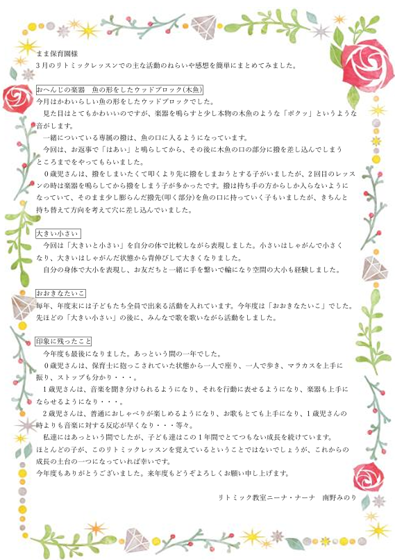 3月リトミックおたより