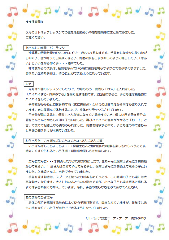 リトミックの先生から