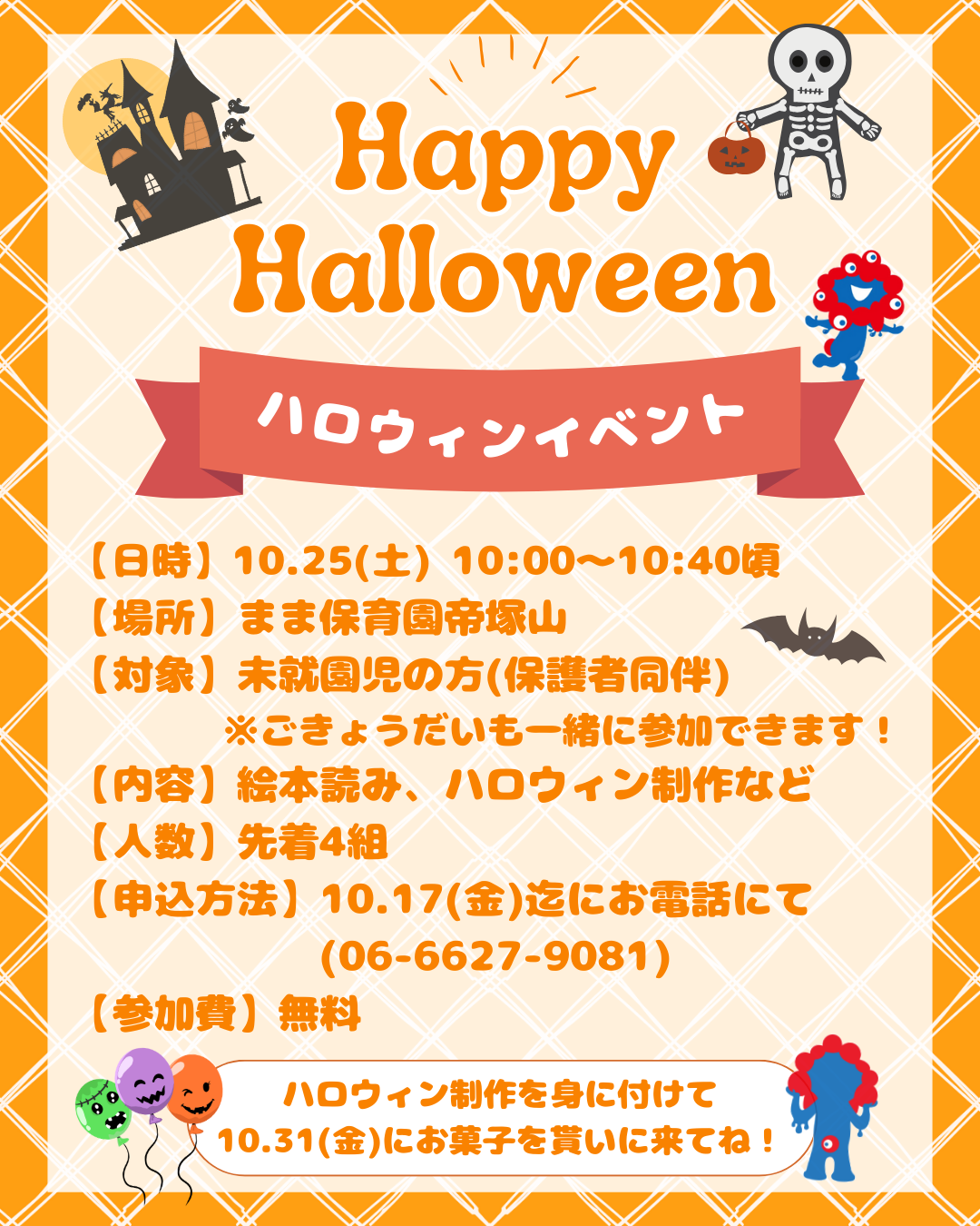 まま保育園帝塚山でハロウィンイベントを開催します🎃